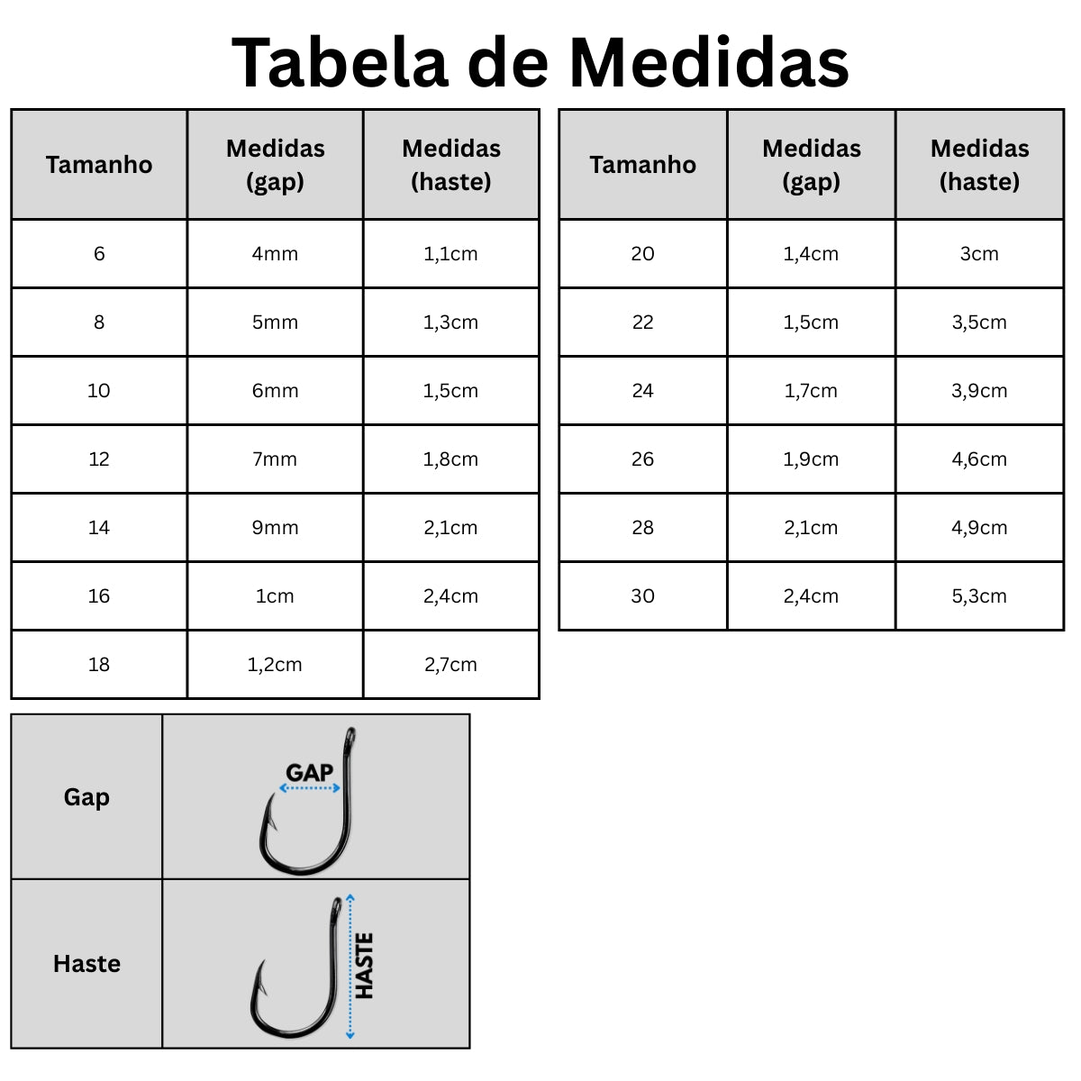 | Tamanhos comuns | Nº 6 a Nº 28 |